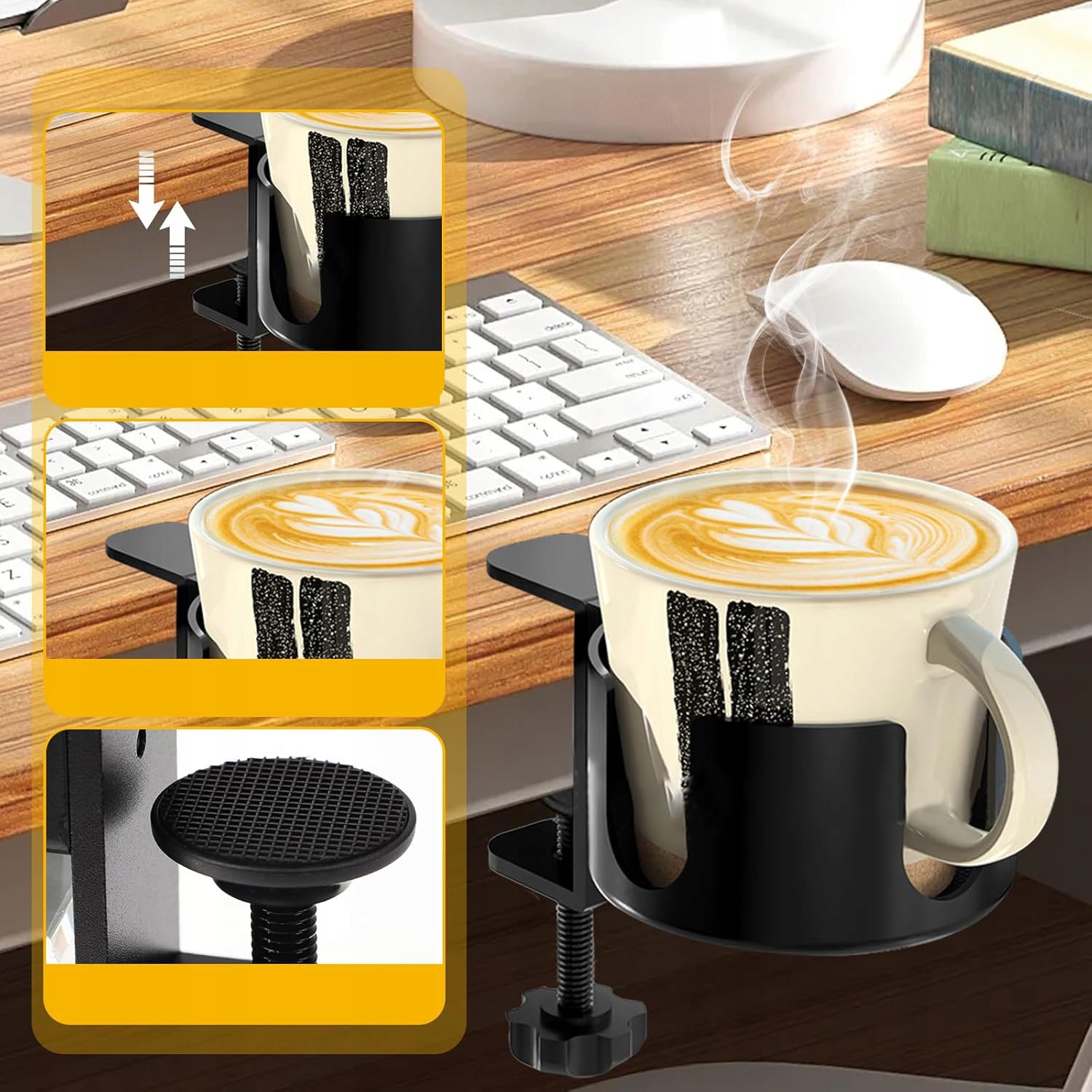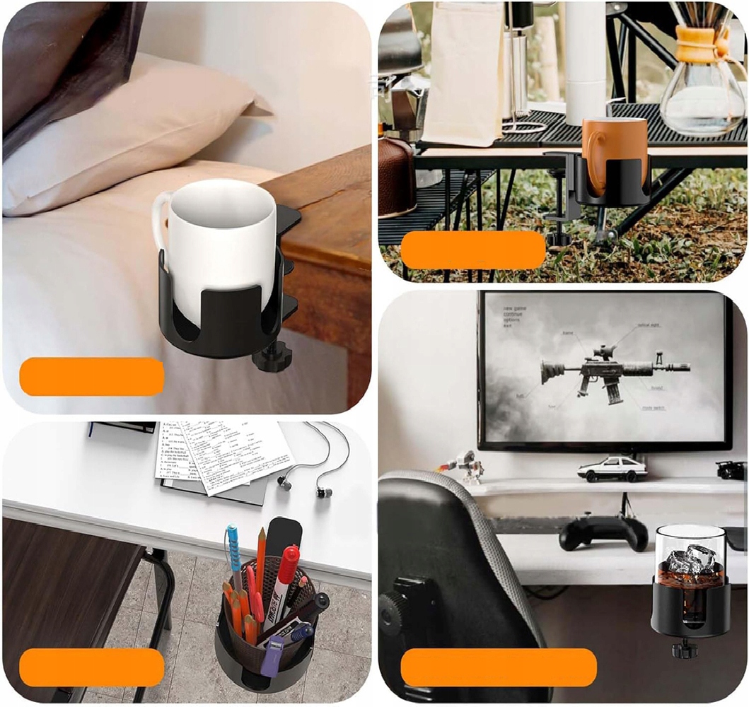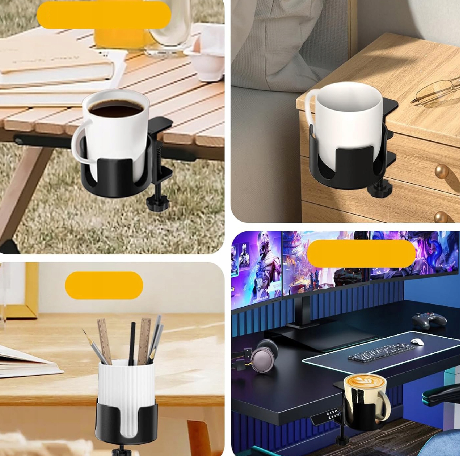 ☕🥛🍵 Всегда под рукой: Держите любимые напитки под рукой с помощью нашего настольного подстаканника с зажимом. Больше не нужно искать напиток или беспокоиться о пролитии жидкости — просто прикрепите его к любой поверхности и мгновенно наслаждайтесь освежающим напитком, пока вы работаете, учитесь, играете или отдыхаете.