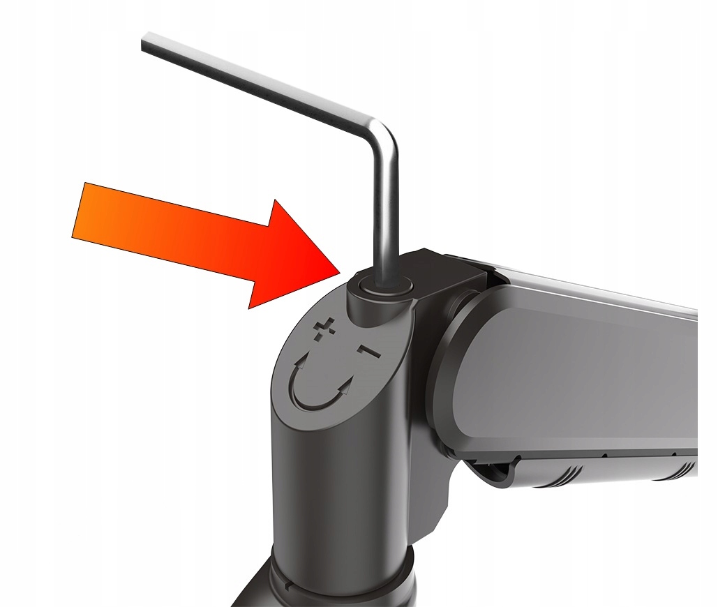 - Регулировка винта «+» увеличивает сопротивление пружины и обеспечивает более высокую настройку монитора,