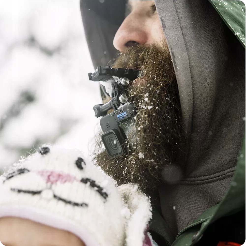 ✔ благодаря мягкой силиконовой конструкции пользователь может с уверенностью удерживать камеру на зубах, зарегистрируя незабываемые моменты с точки зрения первого лица.