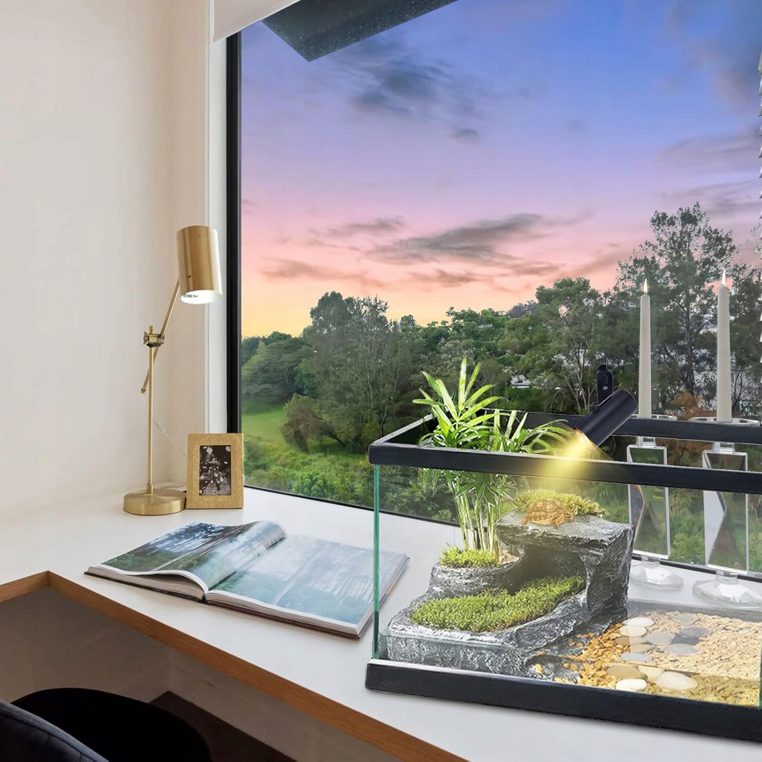 - подражает лунному свету ночью, не нарушая естественную активность рептилий