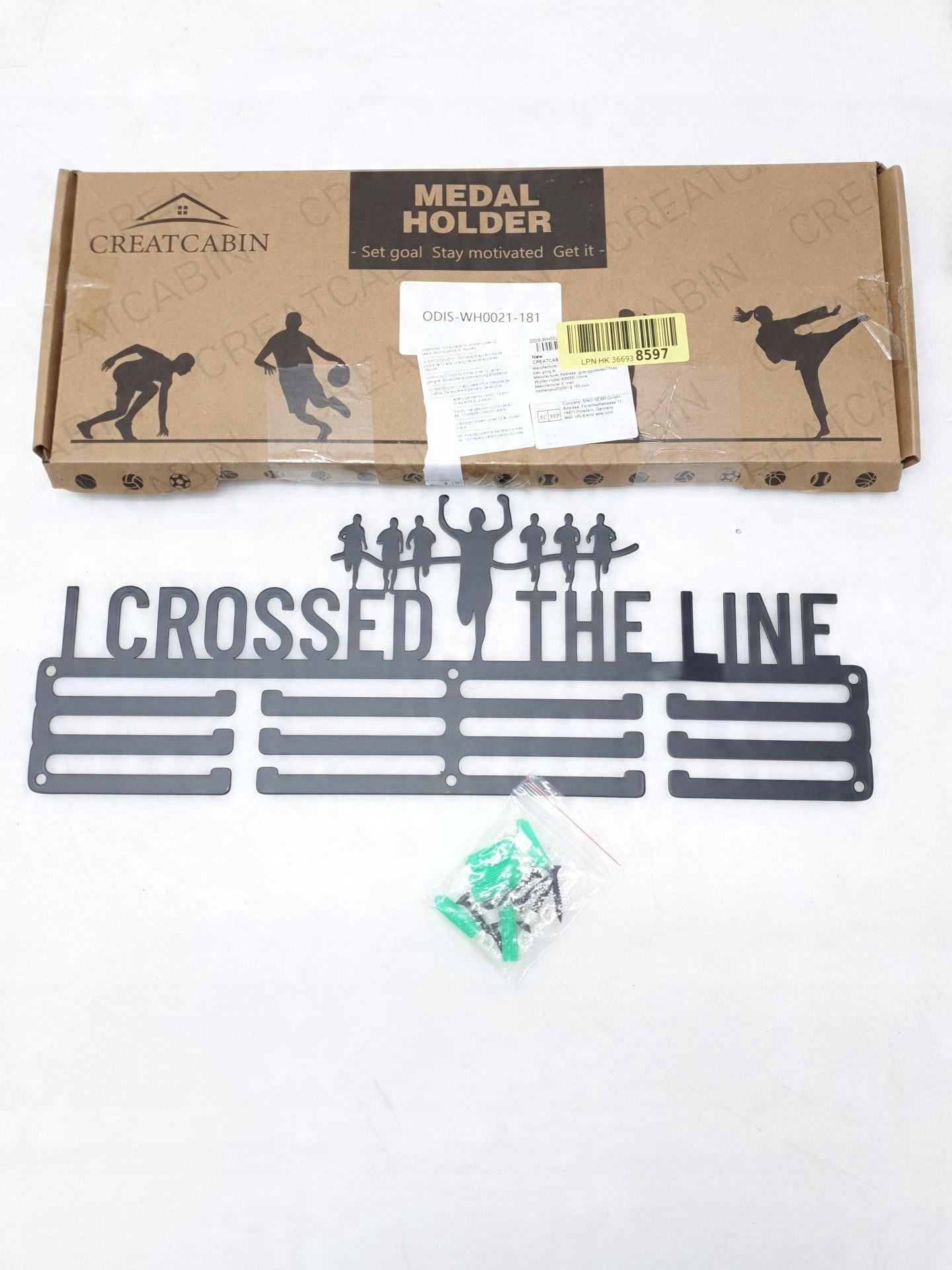 [Я пересек линию]: Этот черный призер представляет первое пересечение финишной черты. Подходит для бега, марафона и других гонок. Позвольте этому крючке для медали запечатлеть ваш замечательный момент.
