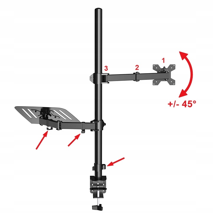- Ручки с обеих сторон могут быть установлены в любой высоте и могут быть заменены на пад. Кроме того, вы также можете заменить и прикрепить подставку на более длинное плечо и монитор на более короче.