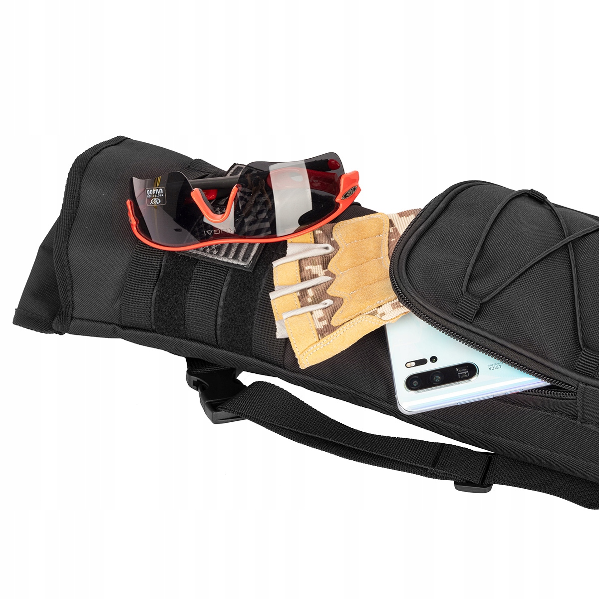 2. Основной диапазон, чтобы сохранить выстрел; Передний карман на молнии для хранения очков, перчаток, мобильных телефонов и других ценностей.