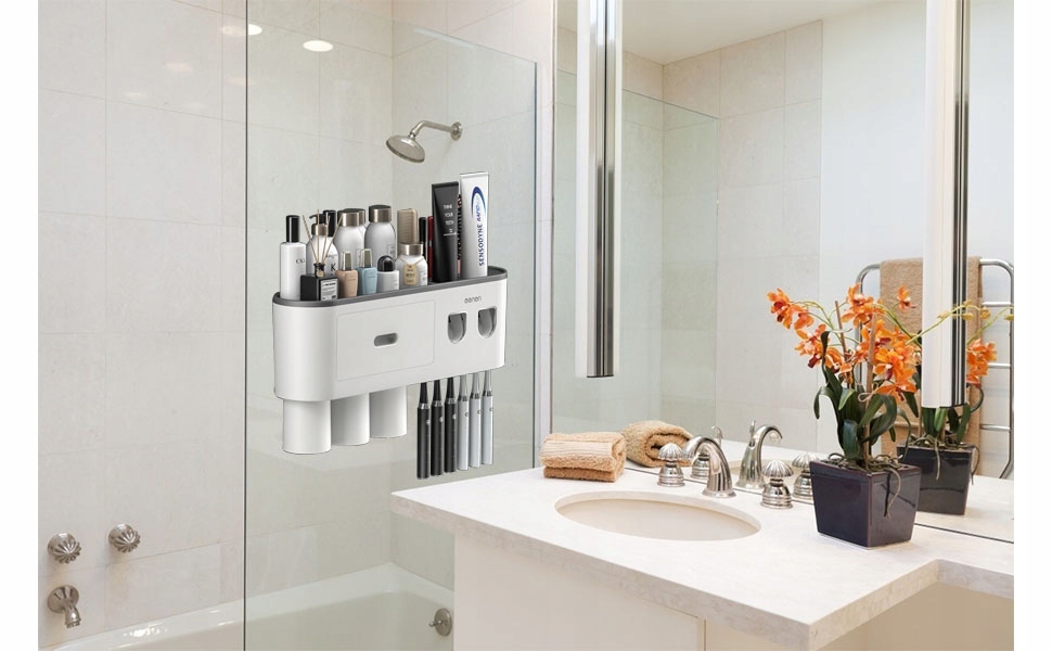 - с awia 2 чашками имеет пространство для 6 зубных щетков , верхняя полка для хранения аппаратов для бритья, машин для бритья, лиц мыть гель и косметику макияжа и ящик для других аксессуаров. дренаж , эффективно поддержание сухой и чистой воды, что делает его более гигиеничным и здоровым.