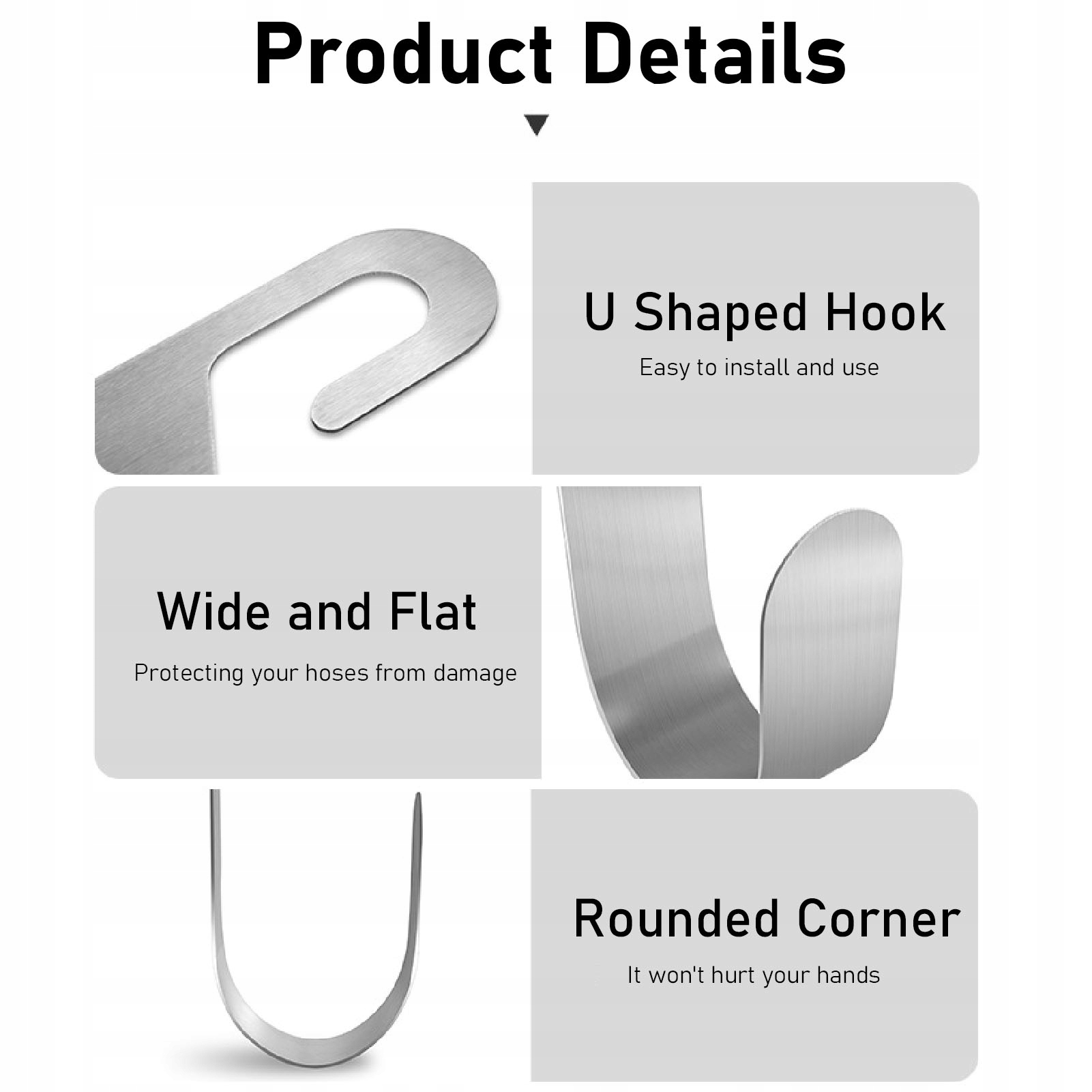1. Нержавеющая сталь: эта вешалка для садового шланга изготовлена из прочной и устойчивой к ржавчине нержавеющей стали, которая выдерживает сложные погодные условия без трещин и ржавчины.