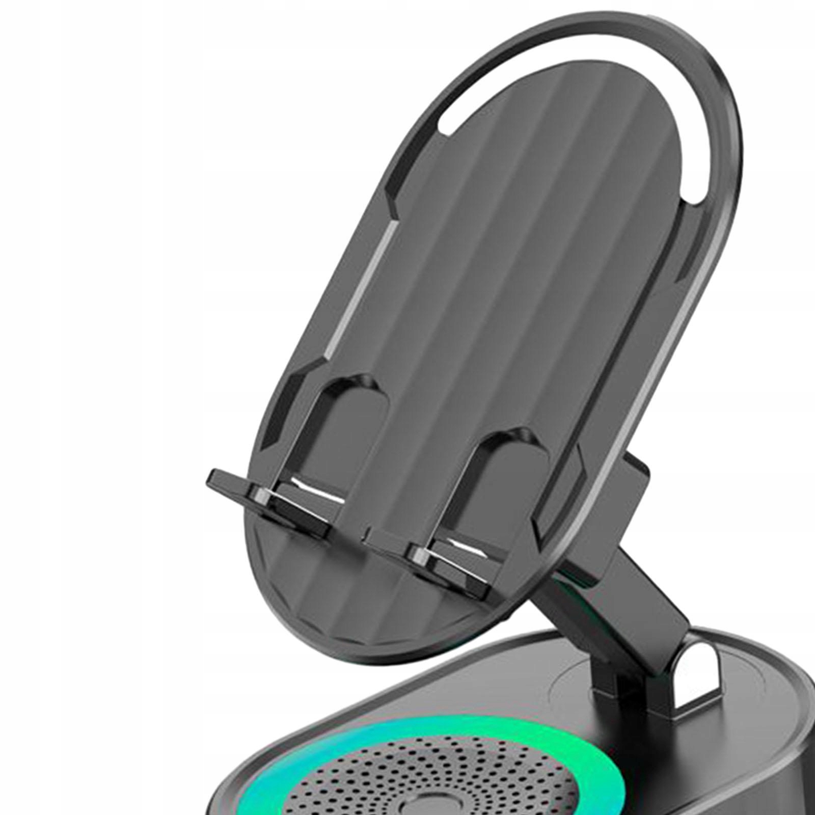 [Индуктивный звуковой подставка]: держатель складного стола для мобильного телефона имеет встроенный датчик, и после размещения его можно подключить к источнику звука. Он имеет 7 красочных, регулируемых окружений, трехмерного просторного звука с 9D качеством и расстоянием приема 10 метров.