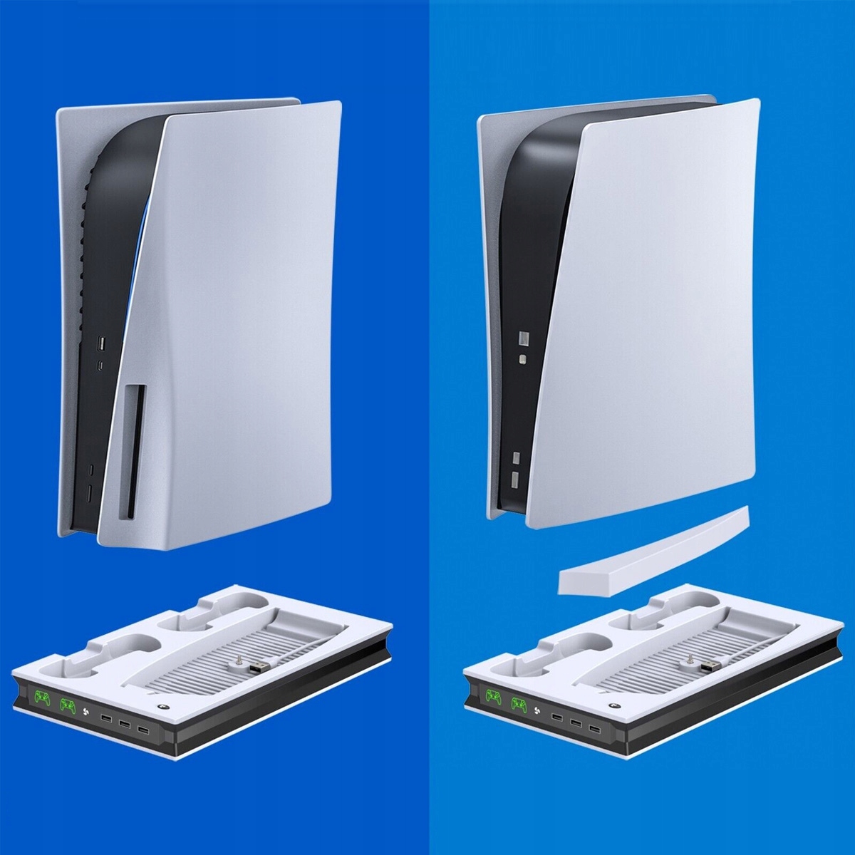 вертикальная стойка для охлаждения зарядного устройства PS5 Многофункциональная станция охлаждения USB с двойной зарядной контроллером, для PS5 UHD/ Digital Edition (не для PS5 Slim) h1>