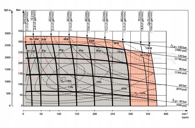 - Максимальный поток временной работы: 75 л/Мин Максимальный момент непрерывного работы: 275 Нм. Временная работа временная работа: 310 нм