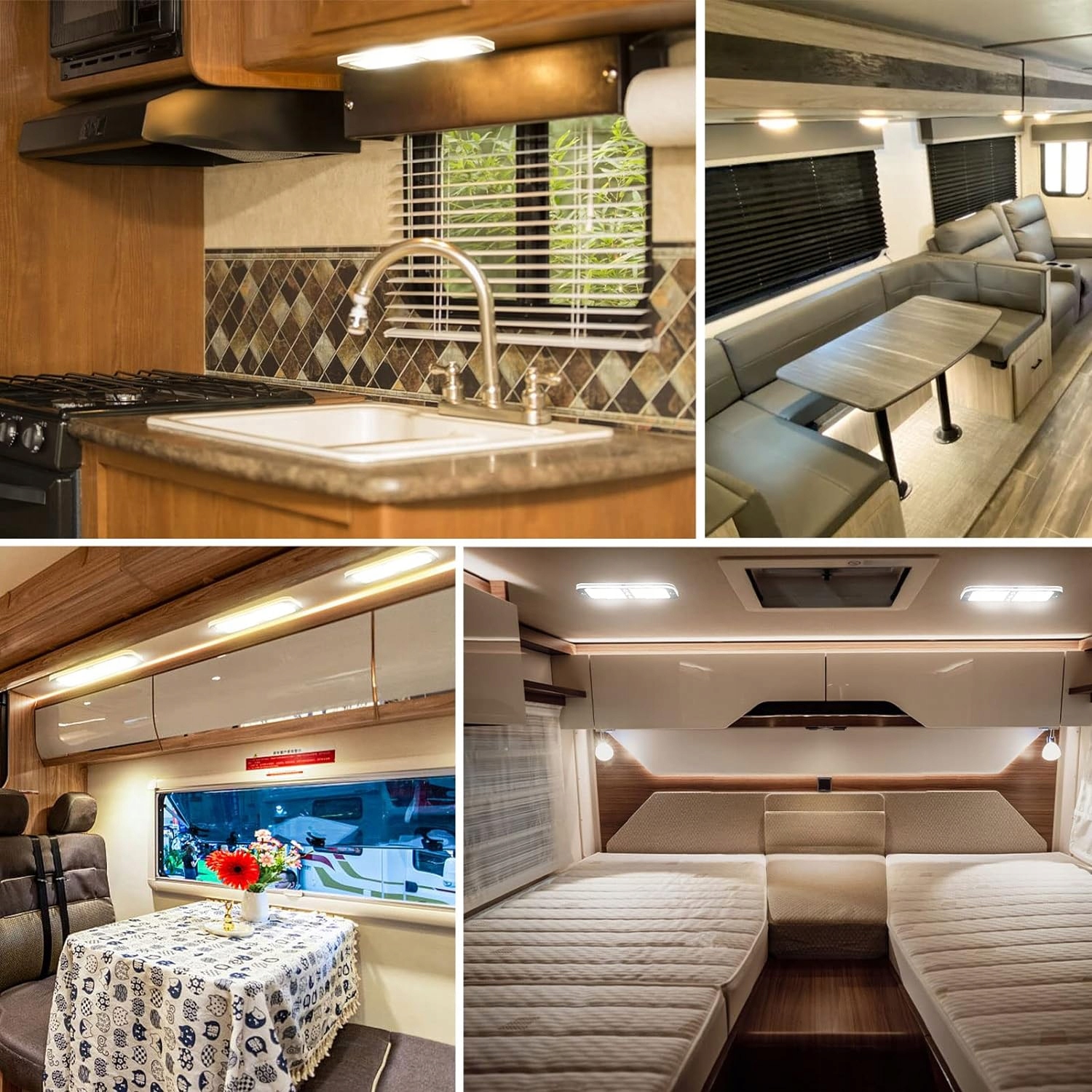 ⭐⭐4 режима, 3 положения переключателя: Внутреннее светодиодное освещение автомобиля имеет 4 режима освещения: холодный белый, теплый белый и желтый свет можно установить на трех передачах, синий свет — режим ночного освещения. , не регулируется.