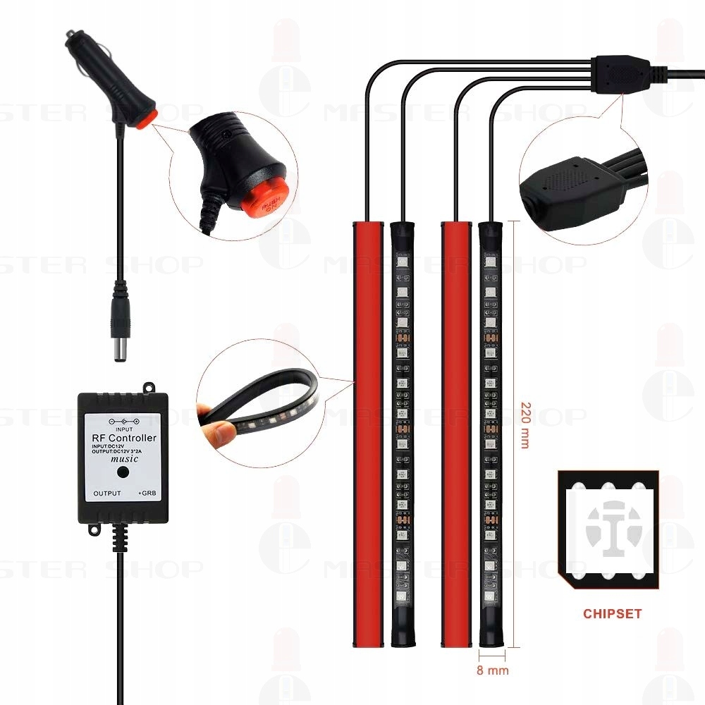 НАБОР ЗВУКОВОГО АВТОМОБИЛЬНОГО ОСВЕЩЕНИЯ 4x12 СВЕТОДИОДНЫХ ОСВЕЩЕНИЙ С ИНФРАКРАСНЫМ ПУЛЬТОМ ДИСТАНЦИОННОГО УПРАВЛЕНИЯ И АККУМУЛЯТОРОМ