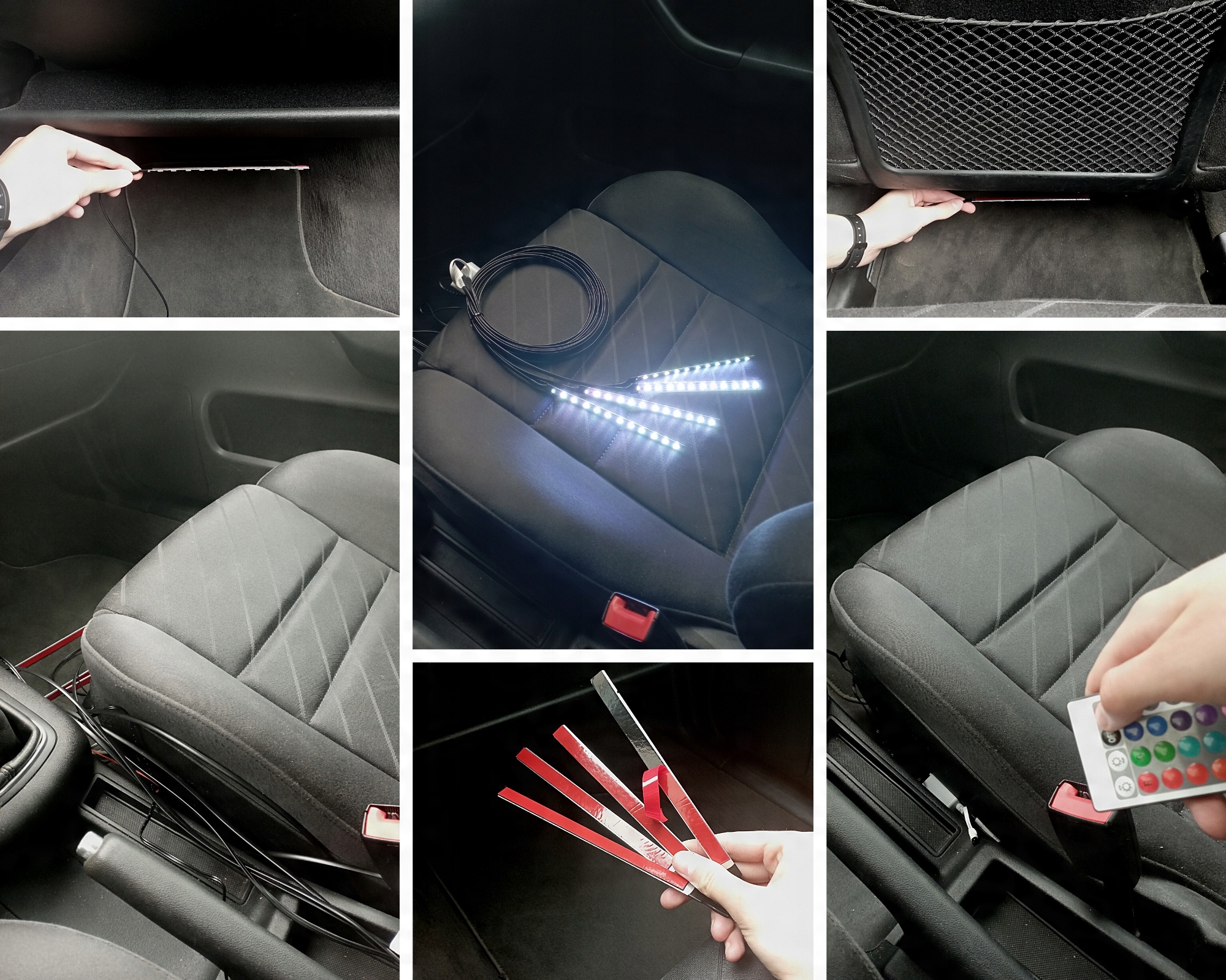 - Набор из 6 алюминиевых RGB лент длиной 16 см каждая + 50 см для багажника.
