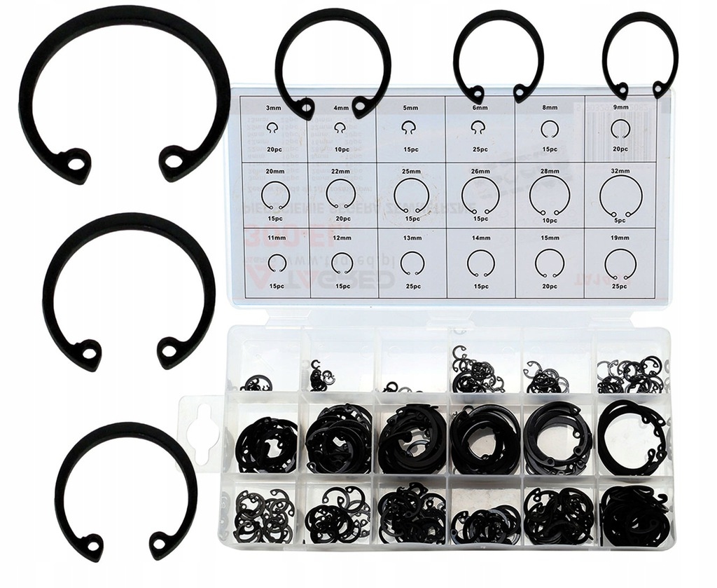 Набор из 300 внутренних колец Зегера. Кольца хорошо держат форму и изготовлены из прочной пружинной стали. Разнообразие размеров в наборе гарантирует, что вы найдете именно тот размер, который вам нужен. Набор можно использовать в любой профессиональной мастерской.