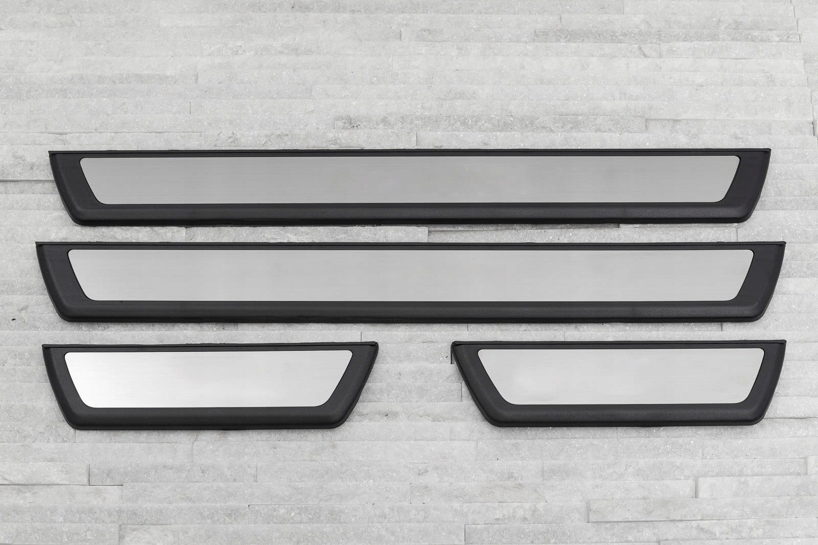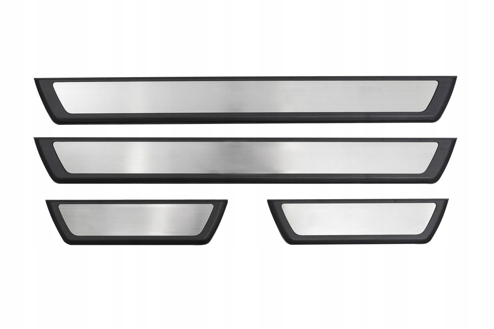 Полосы установлены на лакированных частях внутренних порогов. Они дополняют внутреннюю линию двери, придают площадь порогов спорт и элегантный вид. Эта модель привлекает внимание с тонкой надписью, украшающей каждый из планок. Элемент изготовлен из высококачественной матовой из нержавеющей стали и автомобильного материала ABS, который обеспечивает не только долговечность, но и декоративную природу планок.