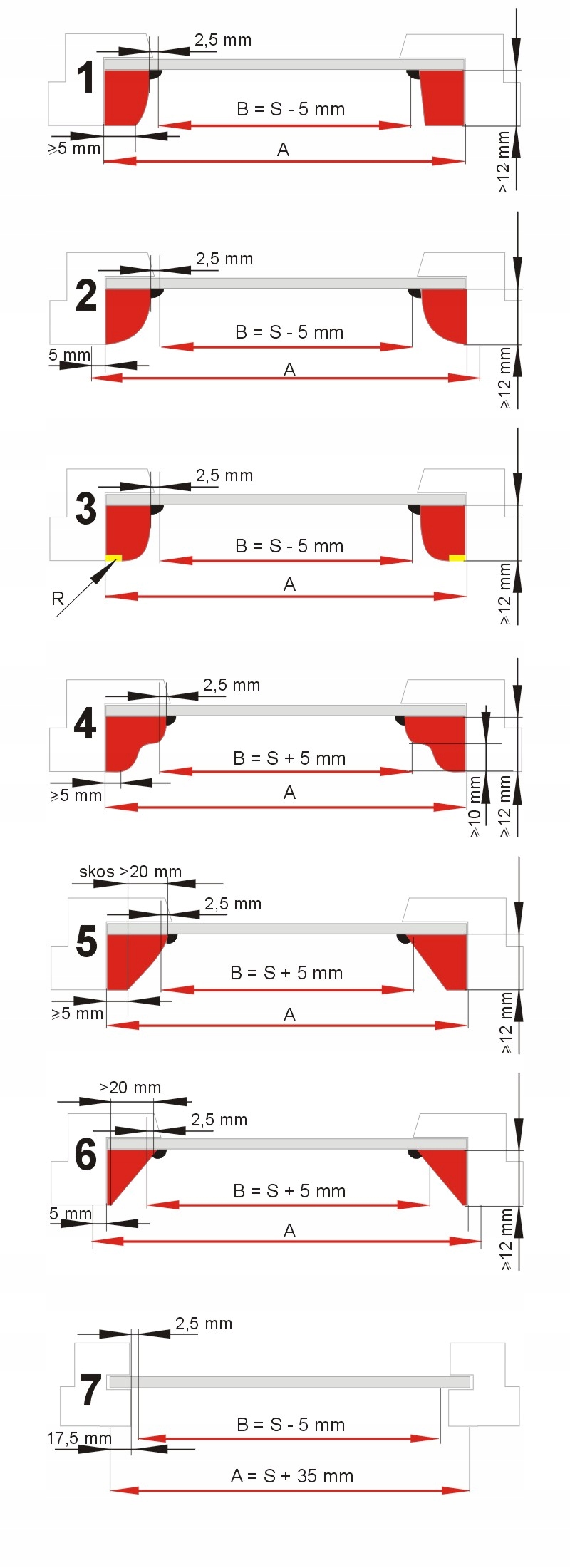 3. Измерение для полосы без плоской поверхности с канавкой с минимальной шириной 5 мм