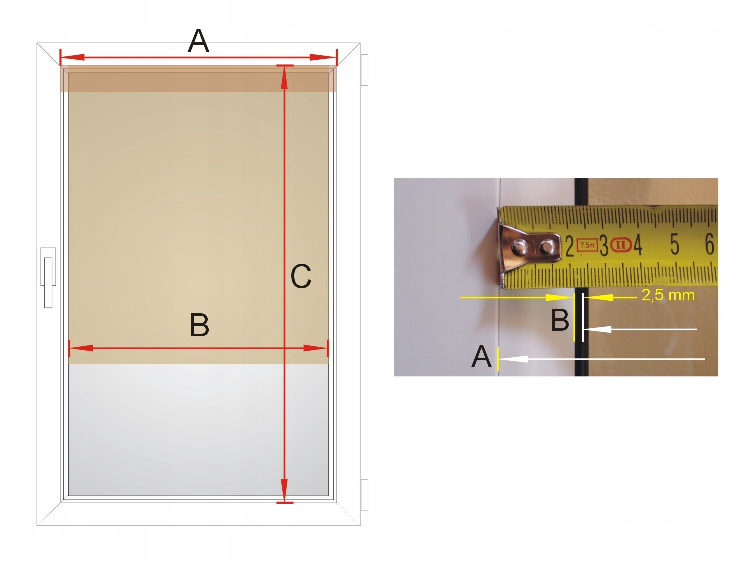 B: ширина материала, т.е. ширина между планками минус 0,5 см (другими словами, это ширина стекло плюс резиновые уплотнители минус 0,5 см, чтобы материал не прилипал, разница ширины должна быть около 4 см, эта ширина и будет материалом)