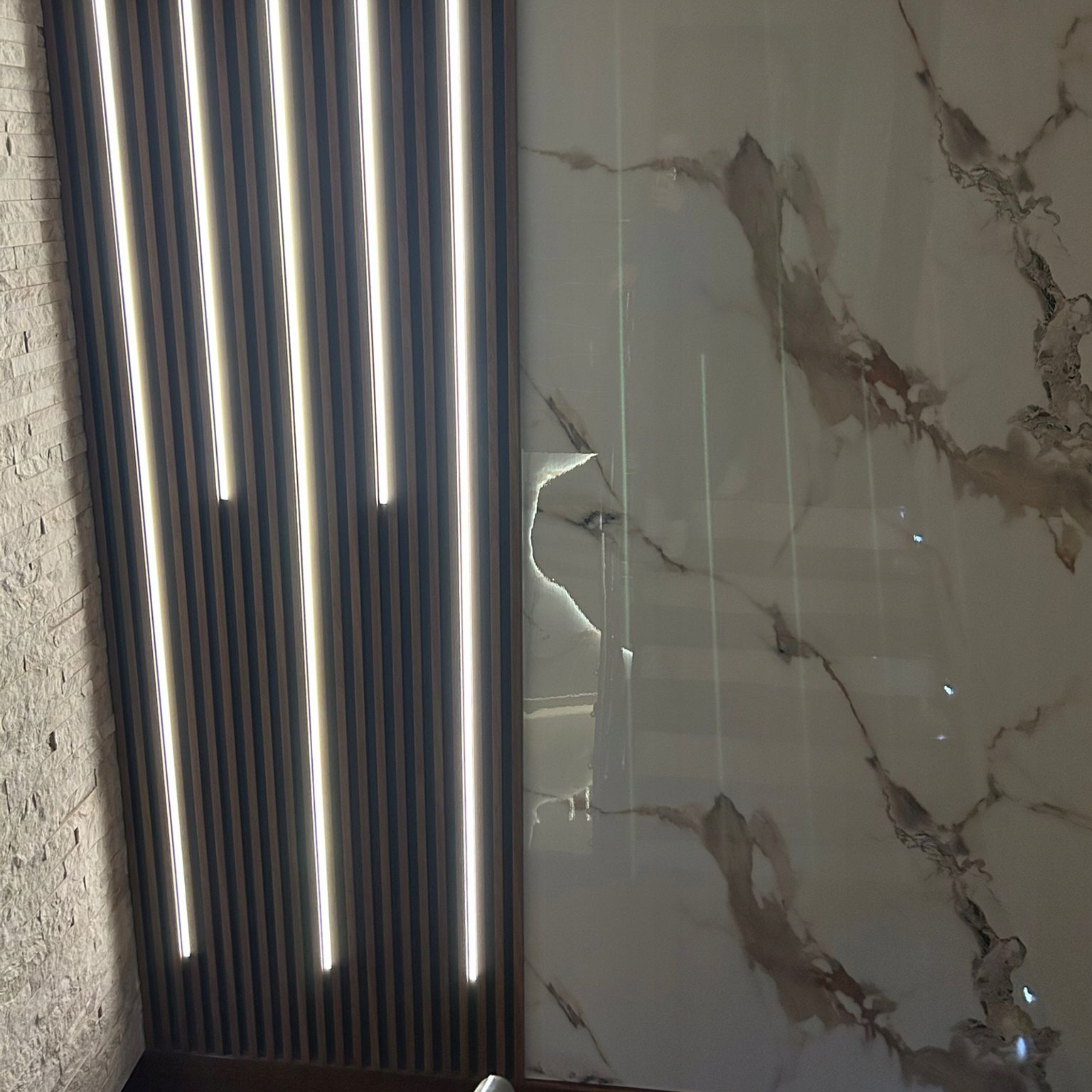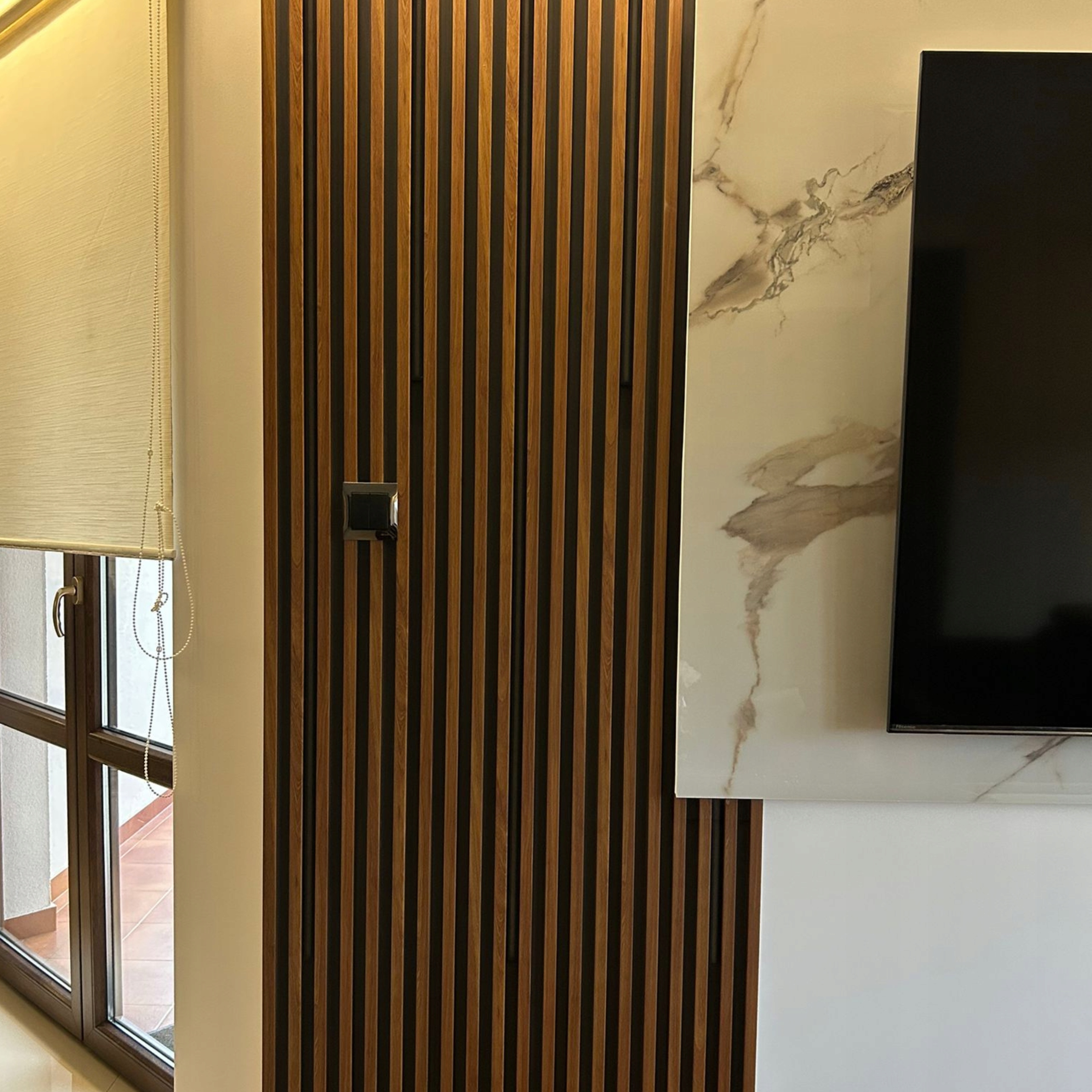 ➡️Эффект оптического увеличения пространства благодарявертикальным линиям, подчеркивающим высоту стены.
