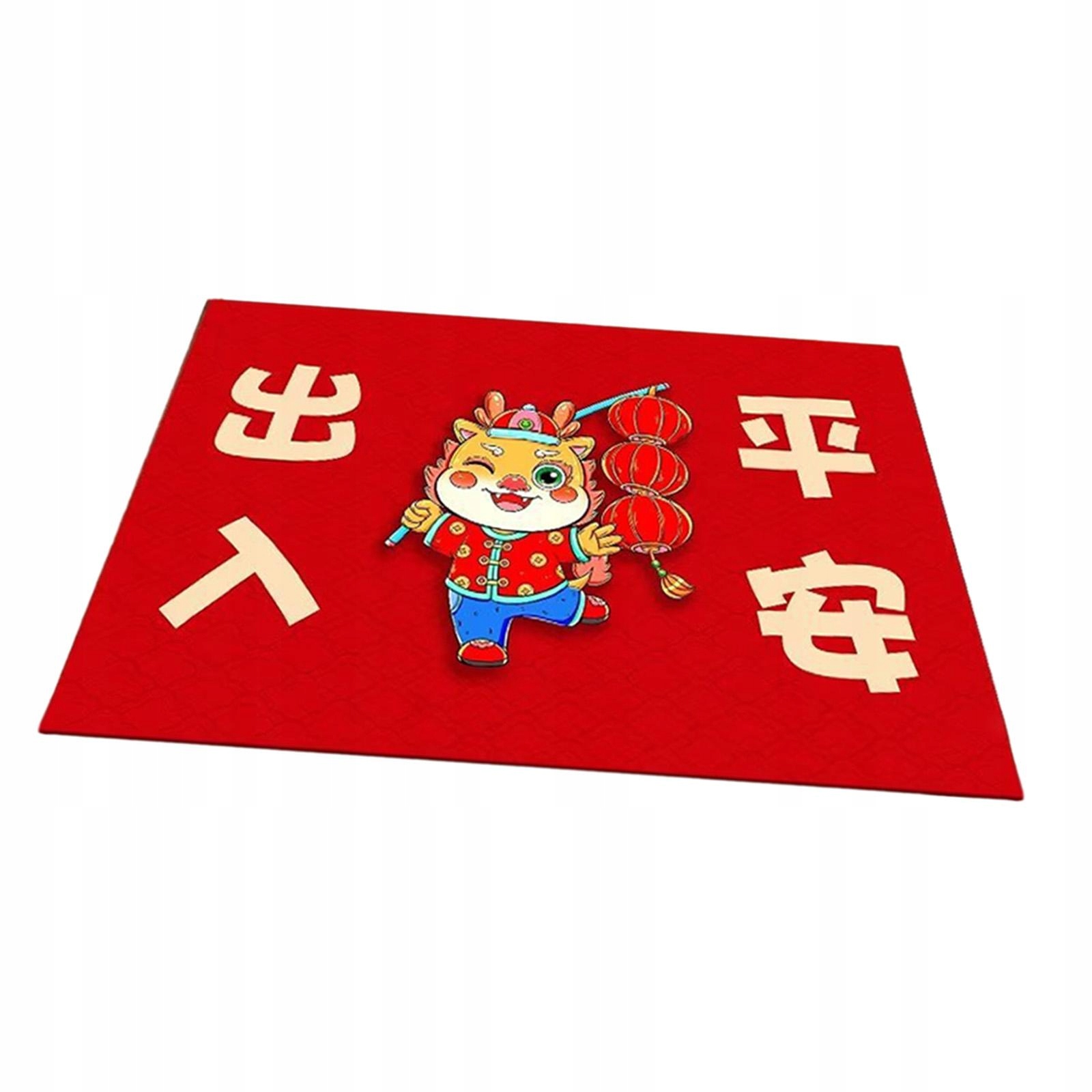 [Украшение дракона 2024 г.]: Пол коврик по случаю китайского Нового года в красном, элементы из очаровательных мультфильмов на новый год, добавьте сильную атмосферу фестиваля