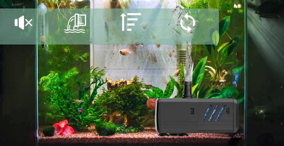 Насос фильтрования к аквариуму оснащен 4 сильными всасывающими чашками для безопасного прикрепления к стеклу. Он также имеет 3 типа разъединенных сопла для переключения между кислородом, фильтрацией, волнами и обменом водой. Это также очень удобно для создания пузырьков.