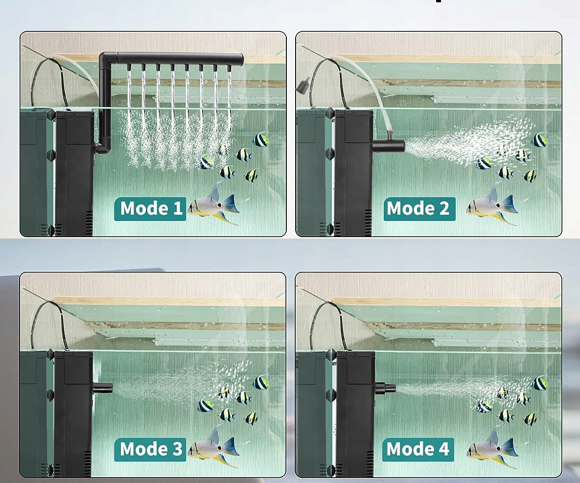 🐙Четыре режима использования: режим дождя и три типа кислородного режима. Режим дождя: в процессе фильтрации поддерживает циркуляцию воды в аквариуме, усиливает фильтрационный эффект и улучшает активность рыб. Кислородный режим: с помощью воздушного шланга или струйной трубки (два типа) вы можете закачивать кислород в аквариум для равномерного обогащения воды.