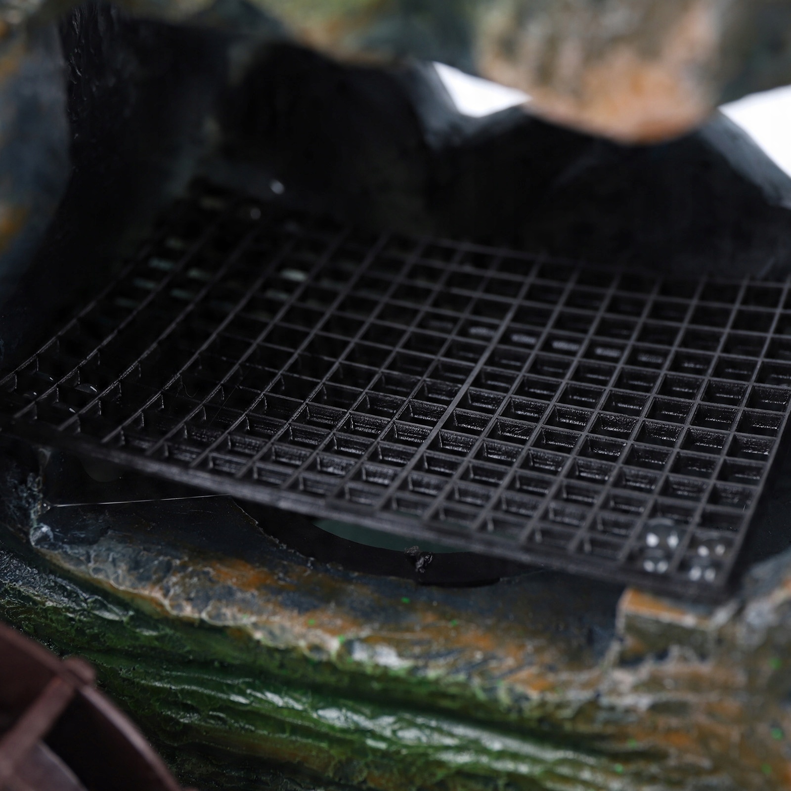 【Светодиодные мигающие фонари】Наслаждайтесь нашим светодиодным фонтаном на своем садовом патио или на столе в спальне ночью. Красочное освещение и искусственная архитектура делают настольные фонтаны идеальными для украшения. Этот настольный фонтан изготовлен из высококачественной синтетической смолы, нетоксичной, безопасной и долговечной.