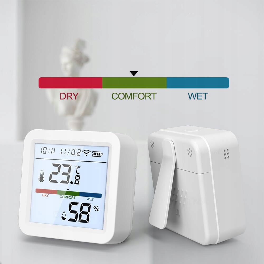 Когда вы находитесь дома, на первый взгляд наслаждайтесь температурой и влажностью благодаря полному ЖК -дисплею со встроенной подсветкой, которая отображает дату, время, время, температура, влажность и уровень комфорта.