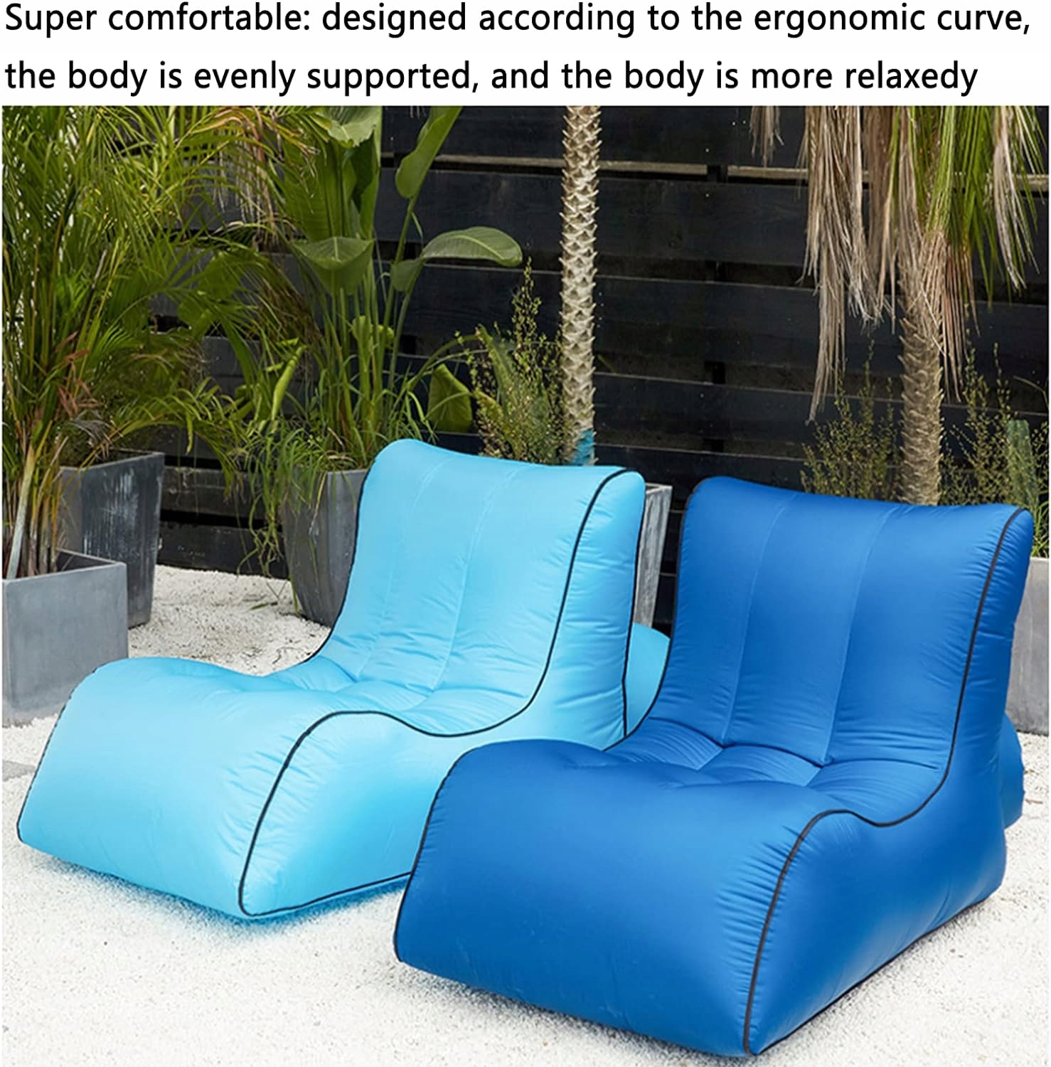 Уникальный удобный дизайн Изделие имеет эргономичную форму, обеспечивающую равномерную поддержку человеческого тела, а ощущения напоминают облака и воду. Легко надувать Для этого продукта не требуется насос. Проветрите воздух, чтобы наполнить надувной диван воздухом. Удобная сумка для хранения позволяет легко брать его с собой. Высококачественный материал. Изделие изготовлено из однослойного нейлонового авиационного парашютного материала, устойчивого к разрыву и водонепроницаемости, дно изделия вогнутое, несущая способность составляет 200 кг, оно устойчиво и не падает. Супер герметичность Высокотемпературный термоплавкий клей 400 градусов в корпусной части сумки дополнительное усиление водонепроницаемое покрытие Tpr на внутренней стенке сумки сильная водонепроницаемость длительное использование без утечки воздуха Многоцелевое использование Находитесь ли вы на пляже, в бассейне, в кемпинге, в спальне, в гостиной комната, офис, парк и т. д. надувные кресла для лежания — ваш модный выбор.