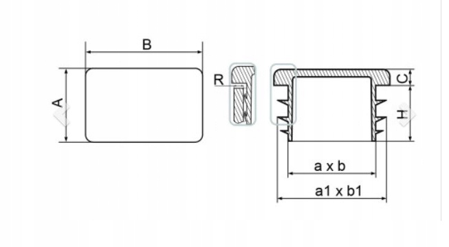 Внутренняя конечная крышка для прямоугольного профиля 20x50 мм -10 ПК.