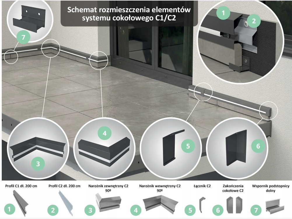 Система плинтуса Renoplast C1/ C2 состоит из: h2> - Закрытие профиля C2 - она доступна только в окрашенной версии, набор также включает в себя экран (молоко) в светодиодную полосу. Окрашен углом на 90 градусов внешнего или внутреннего