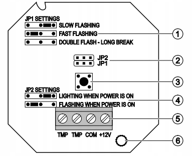 2 — контакты JP1 и JP2 для установки типа оптической сигнализации.