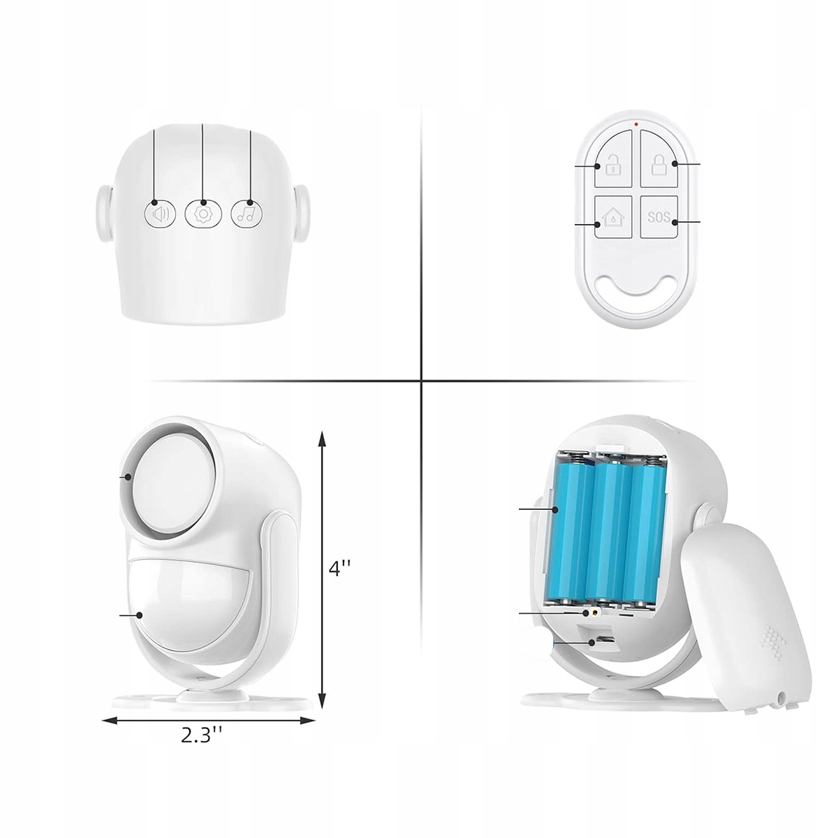 CPVAN CP2-Pro PIR датчик движения, белая сигнализация, датчик движения с дистанционным управлением, 125 дБ, охранная сигнализация для дома, кемпера, квартиры, автомобиля, гаража, офиса, магазина (Wi-Fi не поддерживается)