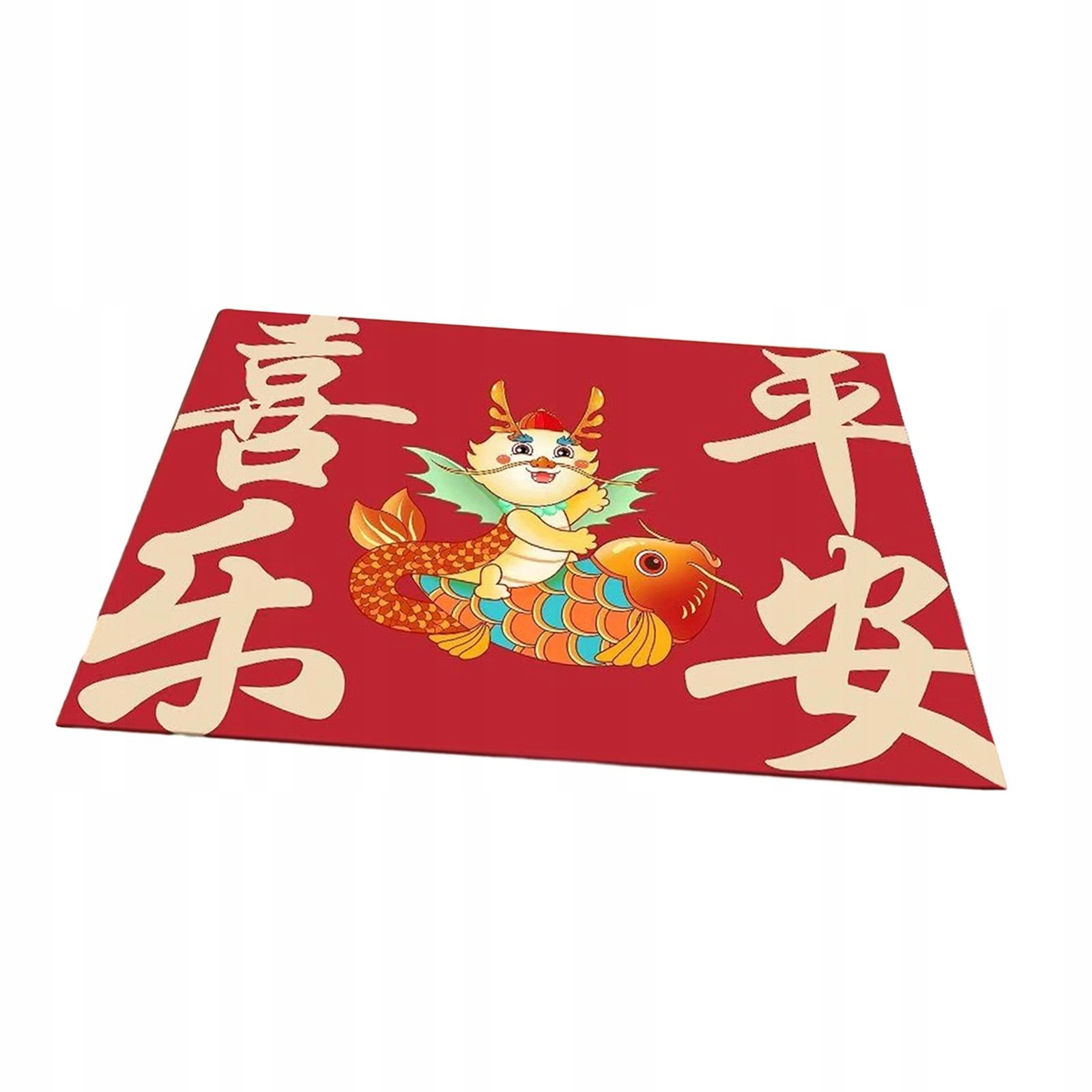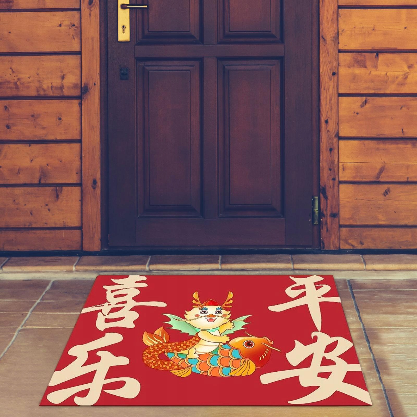 [Украшение дракона 2024 г.]: Пол коврик по случаю китайского Нового года в красном, элементы из очаровательных мультфильмов на новый год, добавьте сильную атмосферу фестиваля