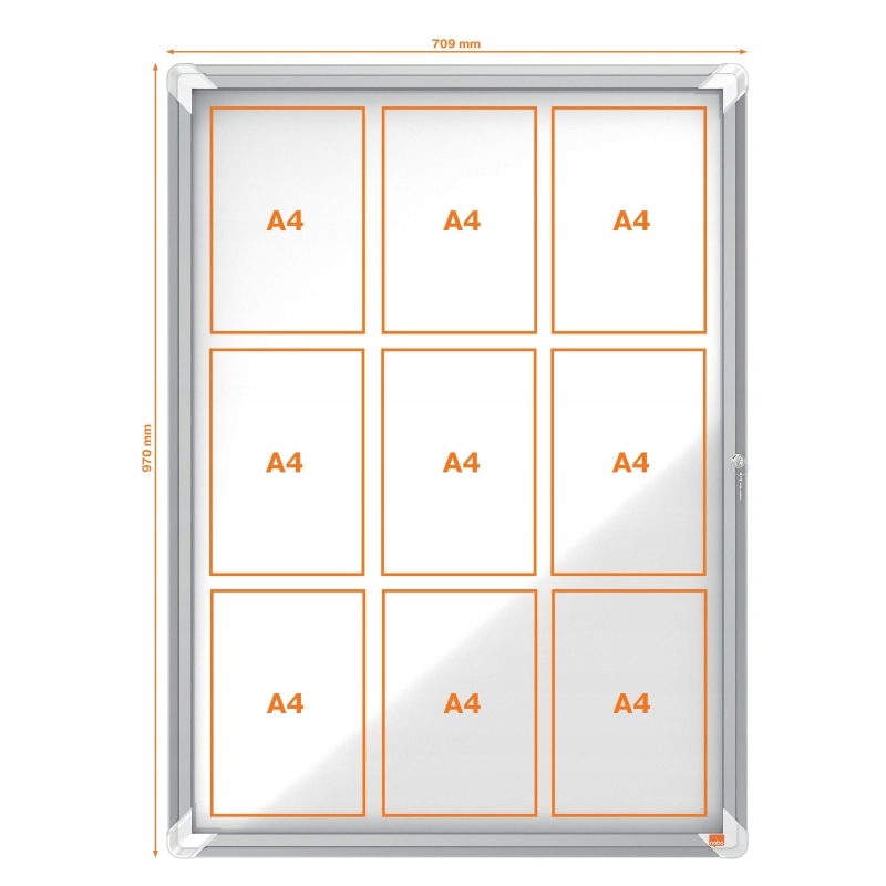 Витрина магнитная рекламная внутренняя, со стеклянной дверцей, закрывающейся сбоку на ключ, обрамленная современной, стильной алюминиевой рамкой, обеспечит Вам идеальная поверхность для безопасного отображения подготовленной информации. Крепится к стене по углам. Размер: 9 листов А4.