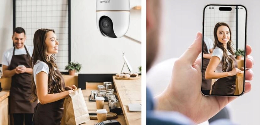 Электронной головкой камеры можно управлять через приложение DMSS, позволяя ей поворачиваться и наклоняться, обеспечивая полный контроль всех углов.