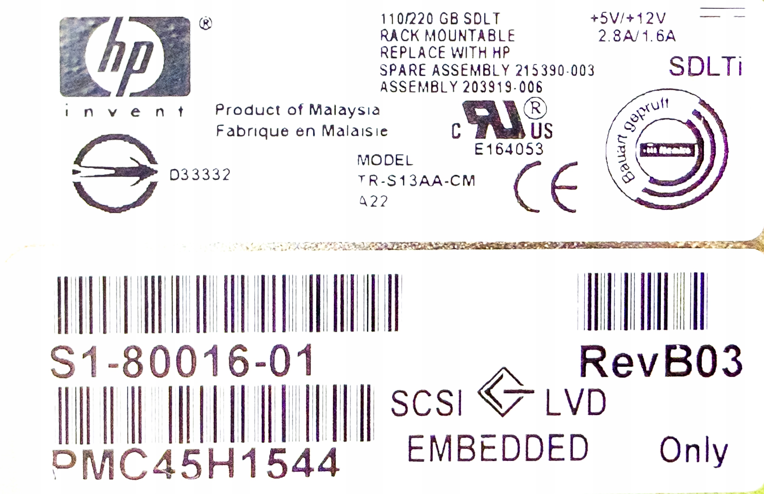 Внутренний ленточный привод HP Compaq TR-S13AA-CM SDLT 110/220 GB SCSI LVD/SE