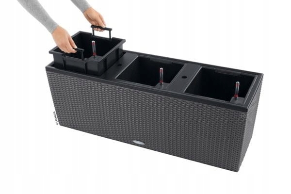 Вставка – сменный элемент, в который мы сажаем растения. Оснащен съемными ручками (ручками). Аппликация для цветочных горшков: CUBICO премиум и цвет, TRIO Cottage 40.