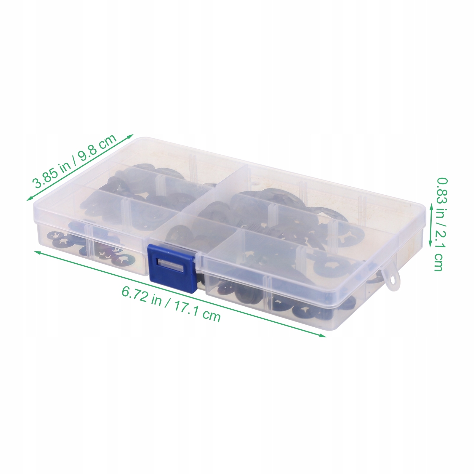 7 размеров, всего 340 шт. в прозрачной коробке, подходят для застежек разных размеров.