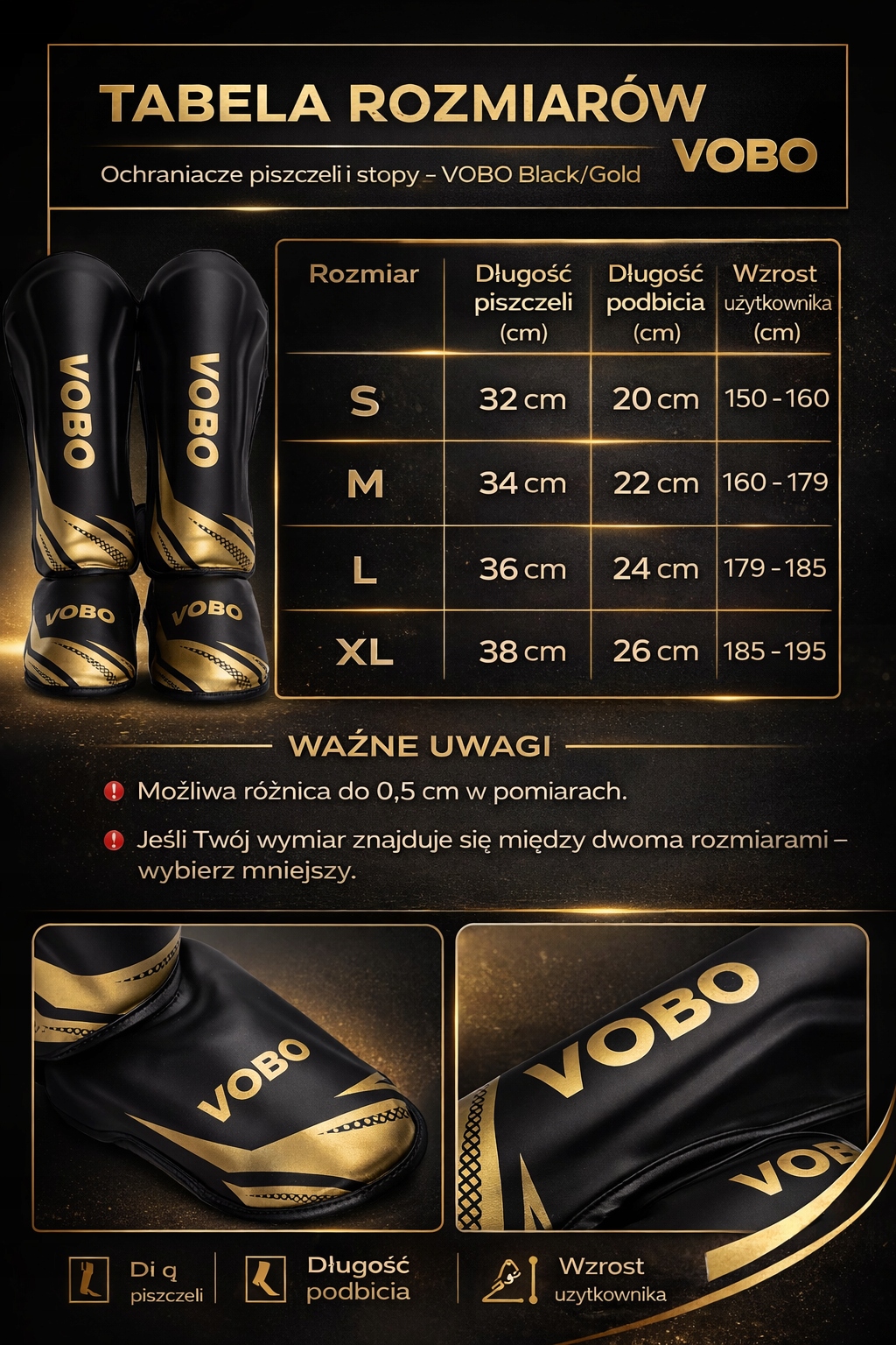 VOBO защита голени и стопы MMA K1 для кикбоксинга — золотой и черный XL