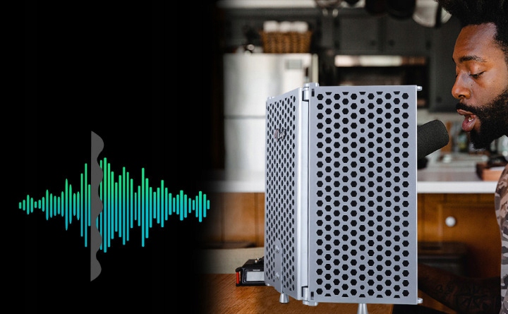 Более чистый и четкий звук: блокирует нежелательный фоновый шум, уменьшает отражения звука и улучшает прямое излучение звука во время записи.