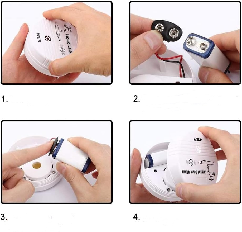 громкие 100 дБ вода оповещения: Без кнопок, без программирования, наш детектор утечки немедленно издает звук, как только три электрода на дне датчика утечки обнаружит воду или жидкость. Каждый датчик утечки воды оснащен очень громкой сигналом 100 дБ, которая достаточно громкая, чтобы услышать его, даже если утечка происходит в подвале, подвал для вина или гаража