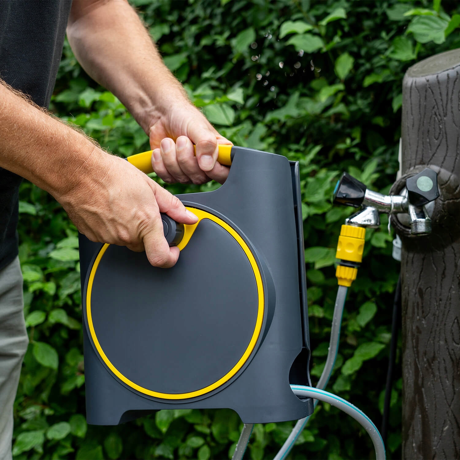 Новый 2025 год! > Шланг с водными ресурсами составляет 11,5 м (10 -метровый водный шланг и шланг, соединяющий 1,5 м), что обеспечивает достаточный диапазон для различных задач. Переносится благодаря эргономической ручке. Быстрое и простое прокатывание, благодаря которой проста и эффективна.