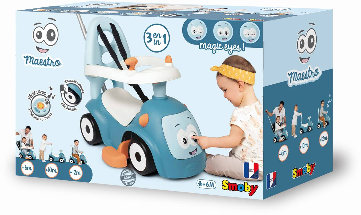 Многофункциональный автомобиль 3IN1 авторитетной компании Smoby - идеальная поездка для вашего ребенка. Дизайн поездки позволяет вам соответствовать игрушке с 3 возможными вариантами. Автомобиль поощряет ребенка встать и исследовать мир. Это идеально подходит для обучения ходить. Ребенок устанавливает первые шаги, поддерживая ручку, которая улучшает стабильность и чувство безопасности. Поездка дает ребенку возможность путешествовать по транспортному средству, развивает суставы бедра и мышцы позвоночника и ног. Ребенок, толкающий ноги, обязательно развивается должным образом и прекрасно проведет время.