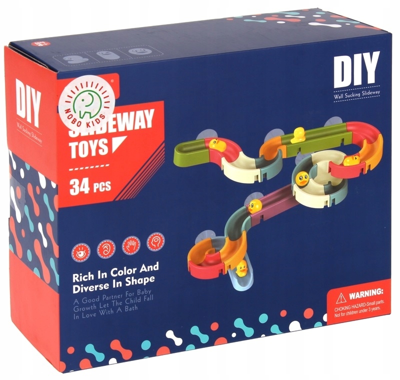 Дорожка для купания в виде горки для утят станет идеальной игрушкой для купания каждого ребенка. Проложите трассу и посмотрите, какая уточка окажется быстрее и сможет лучше пройти трассу. Придумывайте разные комбинации и создавайте свою полосу препятствий, она каждый раз может быть разной. Единственное ограничение – ваше воображение. Проверьте, смогут ли утята справиться с каждым препятствием. Замечательная игрушка, которая не только побуждает к купанию, но и способствует правильному развитию ребенка. В комплект входят присоски, благодаря которым игрушку можно легко прикрепить к стеклу душевой кабины, ванне или к плитке.