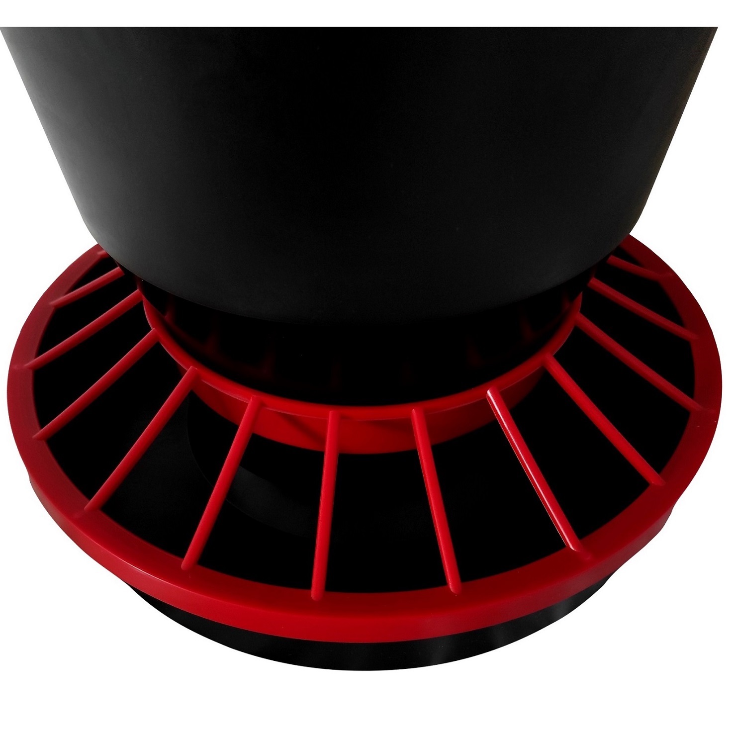 Кормушка состоит из пяти элементов: основания, контейнера для корма, решетки с весами, крышки и нарезного колышка с ручкой. Подходит для всех видов домашней птицы. Чаша имеет решетку, которая предотвращает выскальзывание еды. Кормушка отличается высоким качеством изготовления и очень высокой прочностью. Дополнительным преимуществом автомобиля является его устойчивость даже в полностью закрытом состоянии. Сама заправка очень проста: чтобы пополнить корм, вам просто нужно снять красную крышку. Используемый материал облегчает чистку.