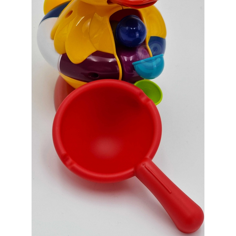 Водная игрушка Ducky от бренда WOOPIE подарит долгие часы веселья во время купания и не только. Ребенок с помощью лопаточки наливает воду в шляпу утки. При наливании воды глаза у утят будут кружиться, ротик откроется и они льют воду в прялку на животе. Кроме того, на задней стороне игрушки есть 2 присоски, поэтому ее можно прикрепить к стене ванной комнаты или ванне. Игрушка не только сделает купание приятнее, но и разовьет у ребенка воображение, мануальные навыки и разовьет осознание окружающего мира, а главное, позволит ребенку сосредоточиться и чем-то заняться во время мытья.