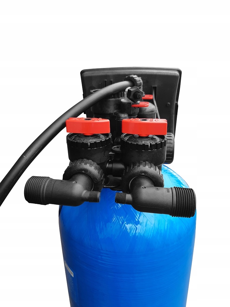 Регулирующий клапан представляет собой топовую, полностью автоматическую головку известного производителя из США – модель Clack – Impression в спецификации Water Technic, т.е. с оригинальным аэрационным инжектором, байпасный байпас и твердый шланг, отводящий смывные воды при промывке слоя.