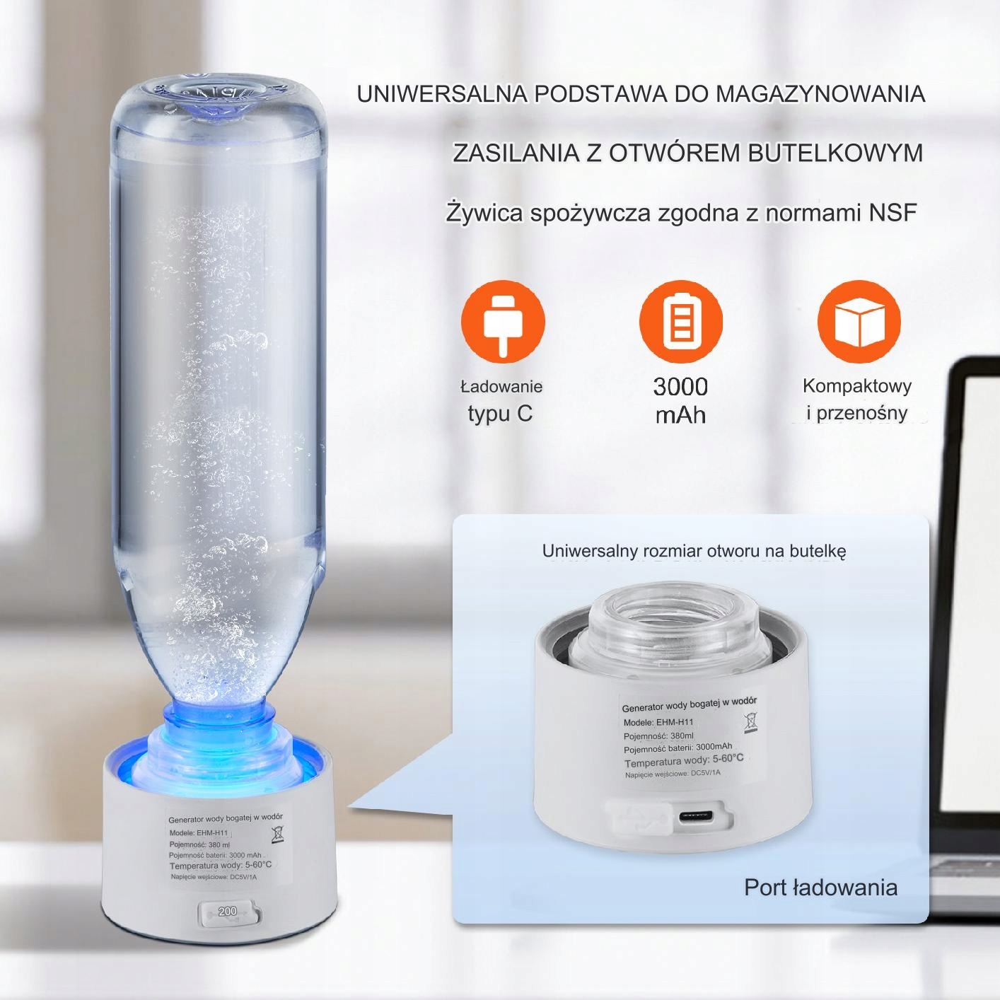 Ионизатор воды практичен благодаря съемной конструкции основания. Вы можете использовать его во время путешествия, поставив на него бутылку с минеральной водой для производства водорода. Идеально подходит для использования как дома, так и во время активного отдыха.