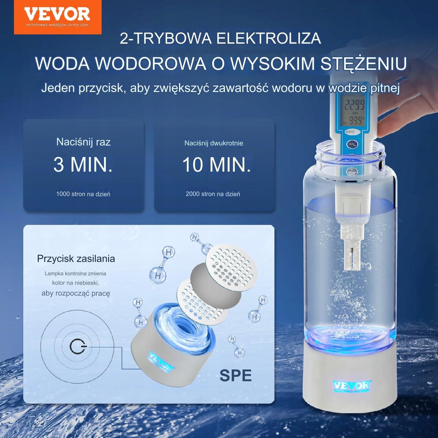 Бутылка оснащена функцией самоочистки, активируемой нажатием и удерживанием кнопки питания. Этот цикл помогает удалить накипь с электродов. Для регулярной чистки рекомендуется использовать горячую воду с лимонным соком или пищевой содой, что обеспечивает длительное и эффективное использование.