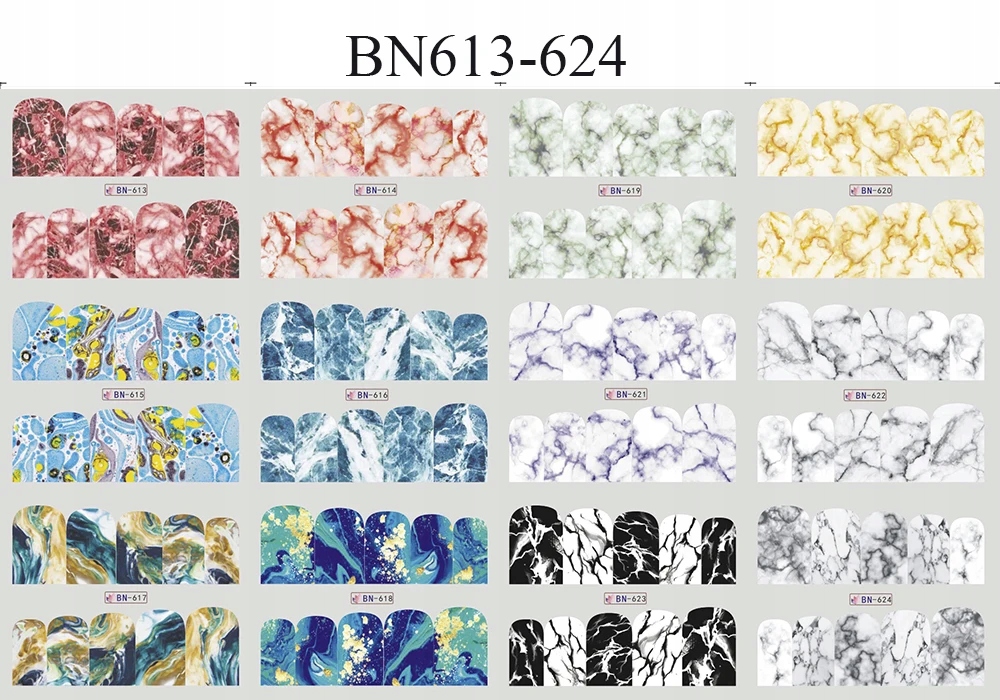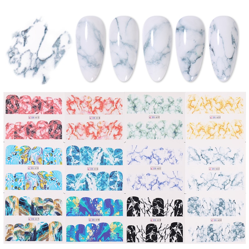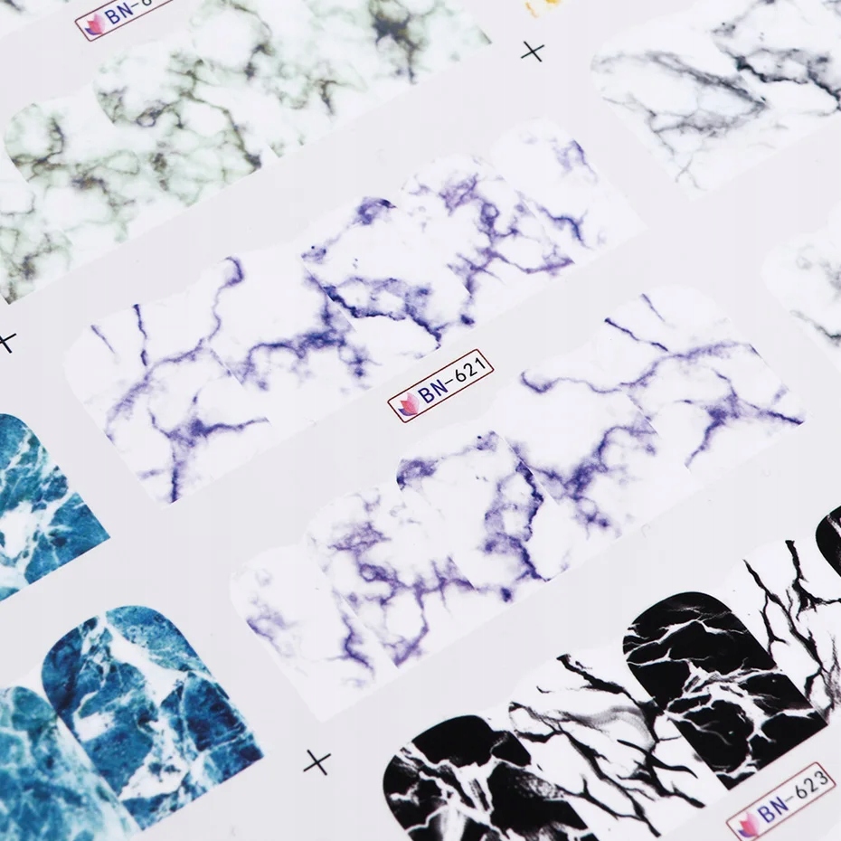 ВОДНІ НАКЛЕЙКИ для декору нігтів, лист 12 мармурових візерунків