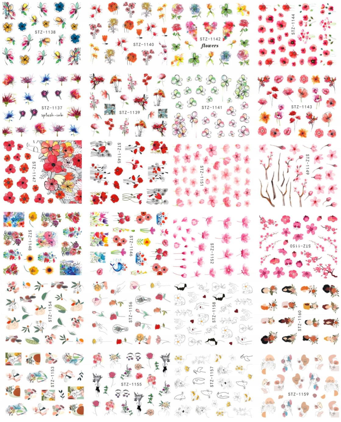 Набор из 10 водных наклеек, идеально подходящих для украшения натуральных, гибридных или акриловых ногтей. Наклейки гибкие и простые в использовании.
