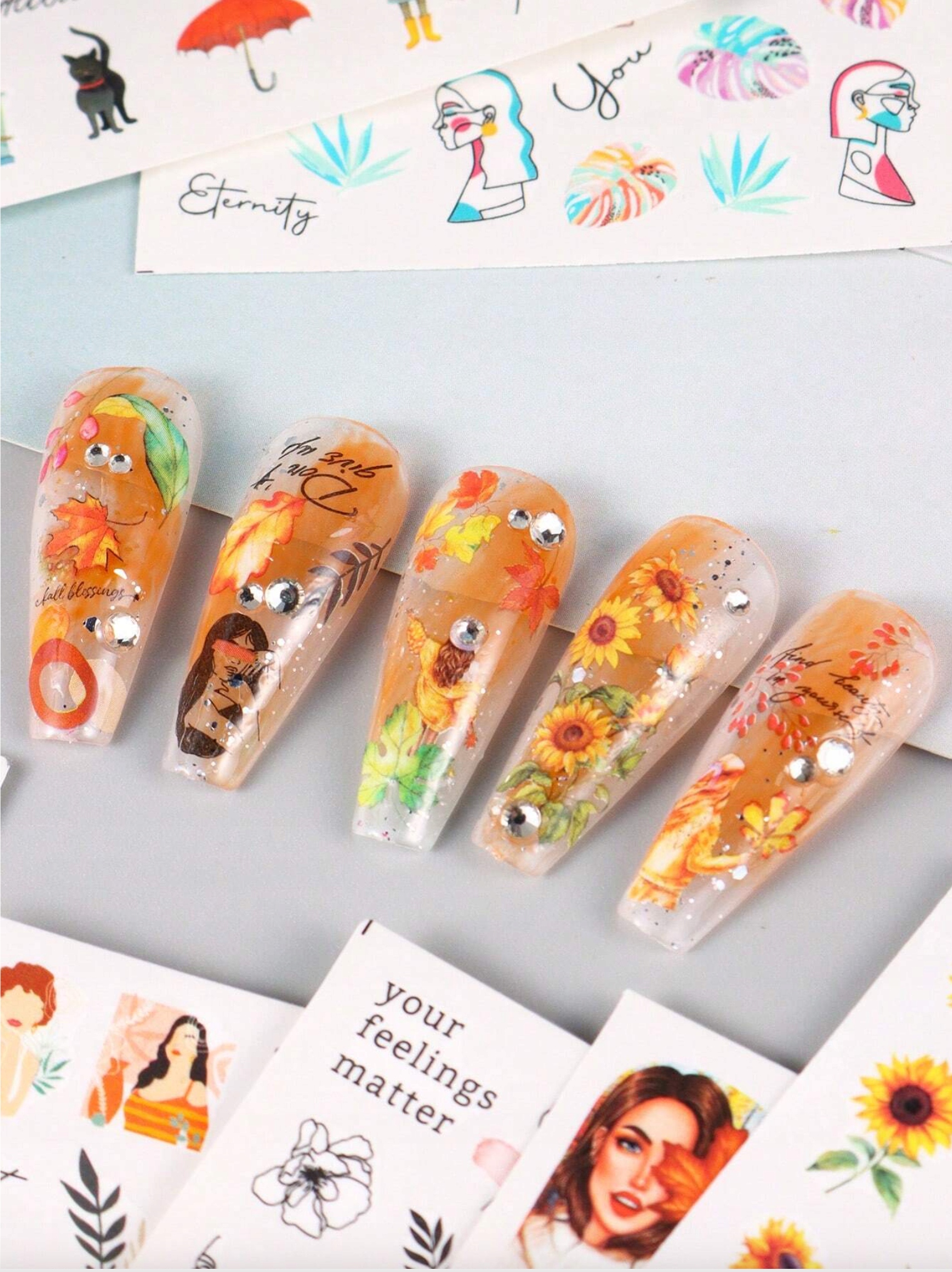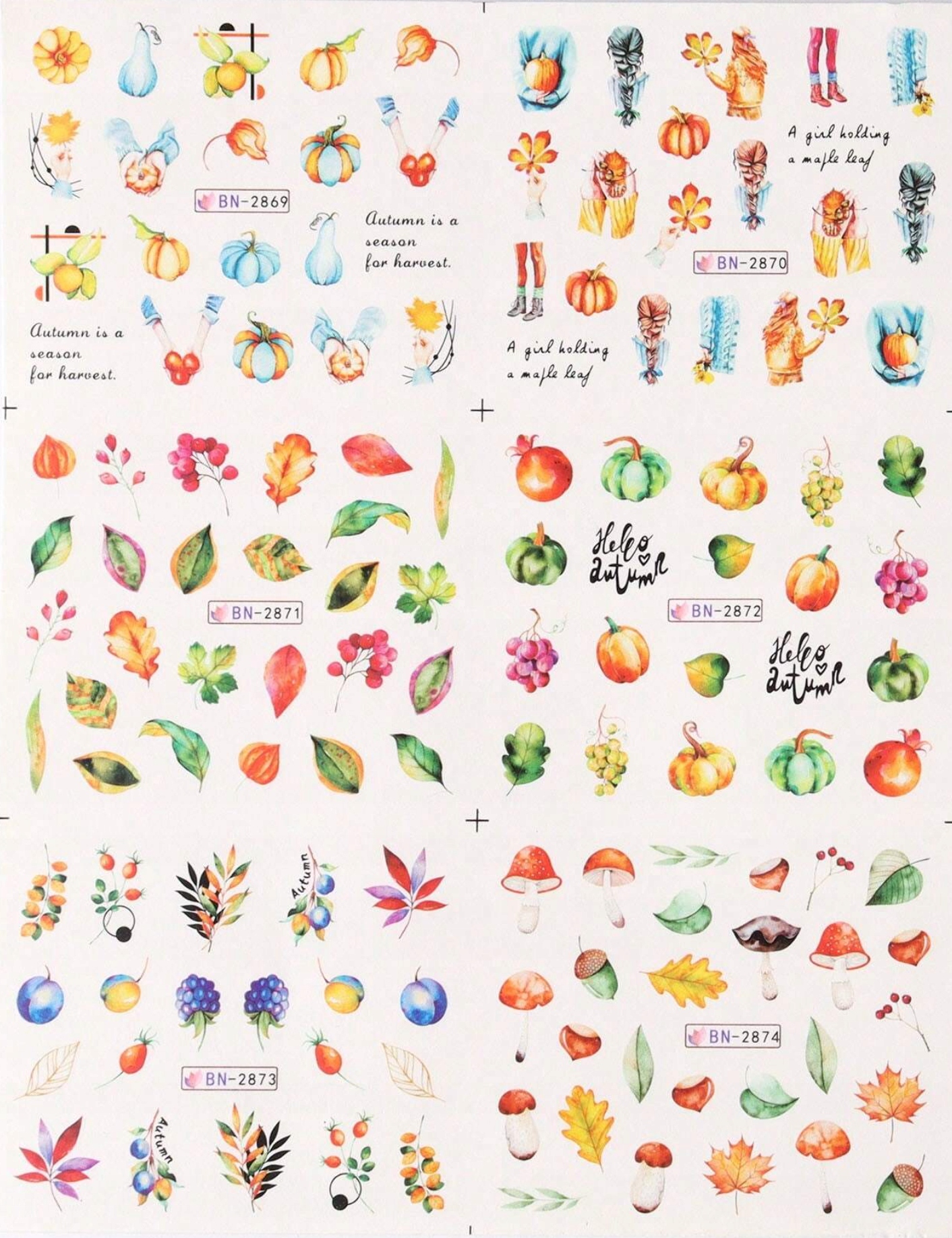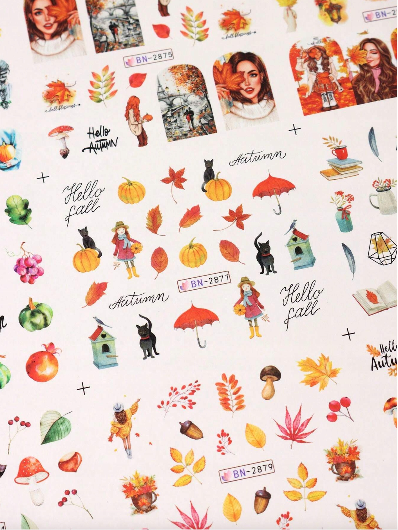 Наклейки с водой для украшений для ногтей лист 12 Осень Осенний Лодж Дизайн листья
